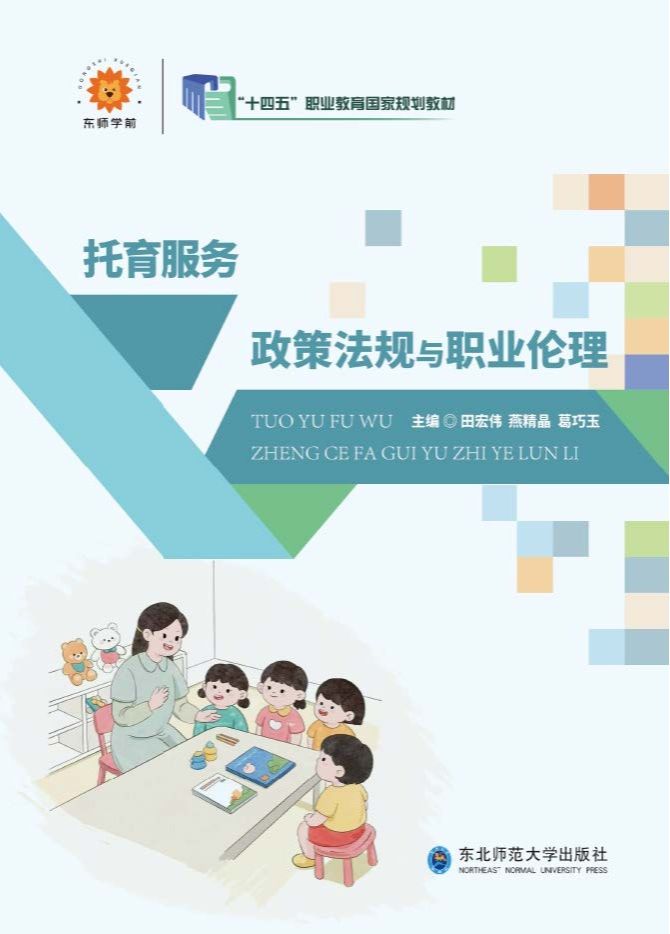 书 名:托育服务政策法规与职业伦理 书 号:978-7-5771-2341-7 主 编:田宏伟 燕精晶 葛巧玉 定 价:49.80元 印刷颜色:四色